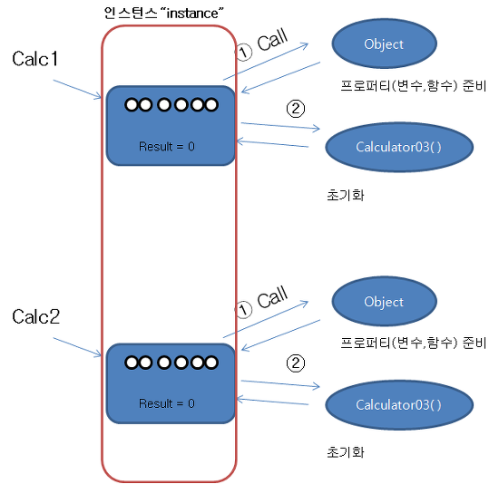 * - new 연산자를 사용하여 인스턴스 변수를 생성한다.